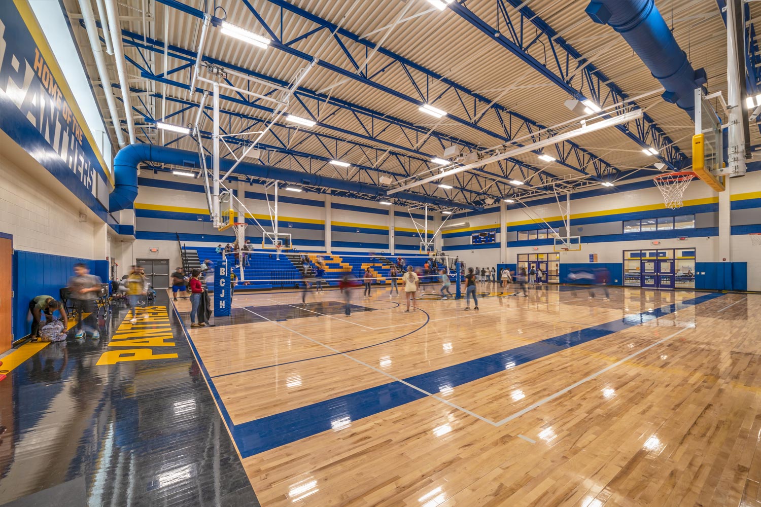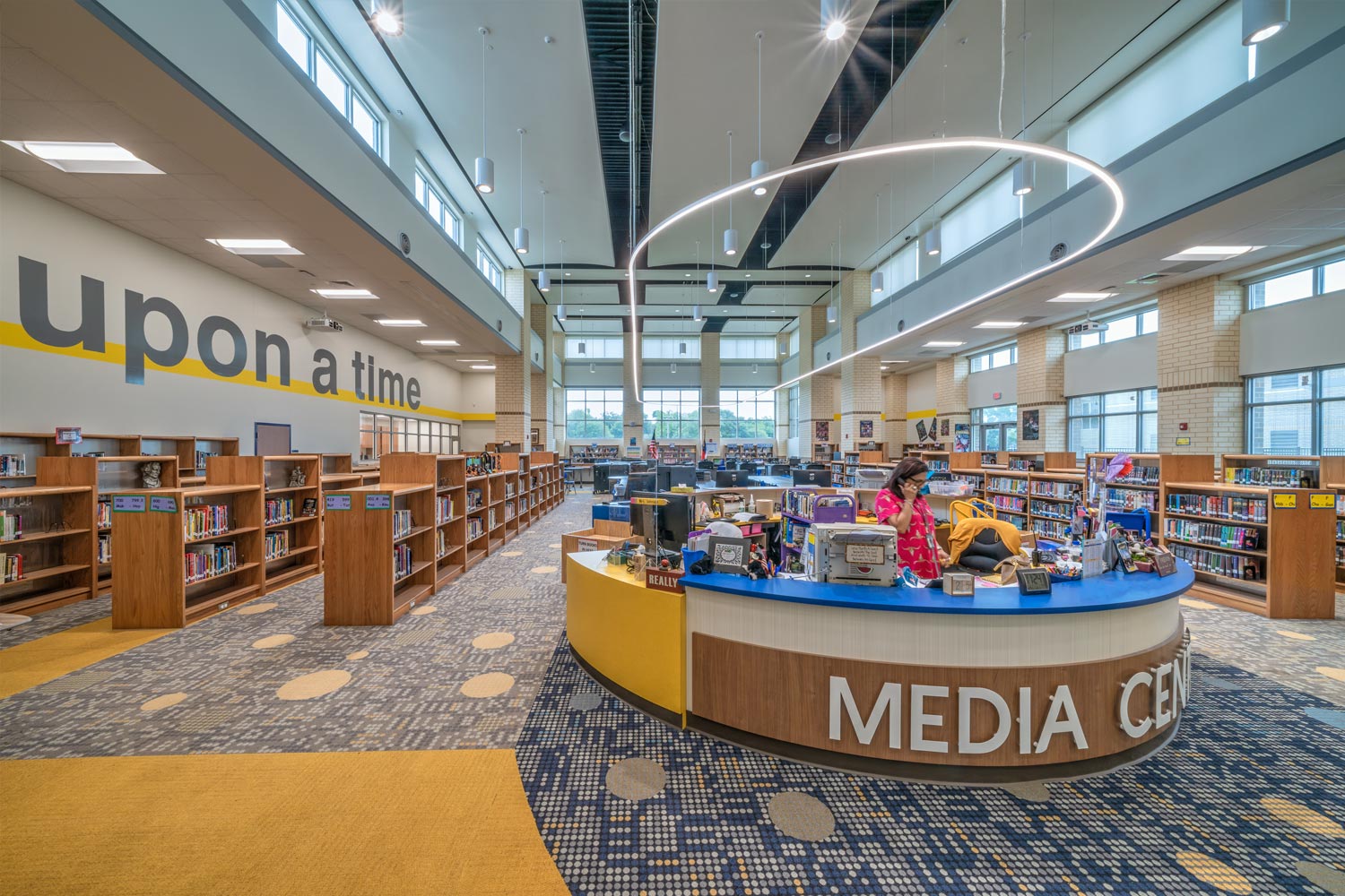 Grades 6–8, 1,200 capacity, administration, classrooms, cafeteria, gym, media center, computer labs, courtyard, parking, and landscaping, plus auditorium renovations. This project transformed the former high school into a modern junior high after the new high school was built. Existing practice fields and a baseball complex were relocated before construction. Early coordination with city officials and utility companies helped prevent delays and cost impacts. The new junior high creates a cohesive 21st-century learning environment, while auditorium renovations preserved an important public assembly space.