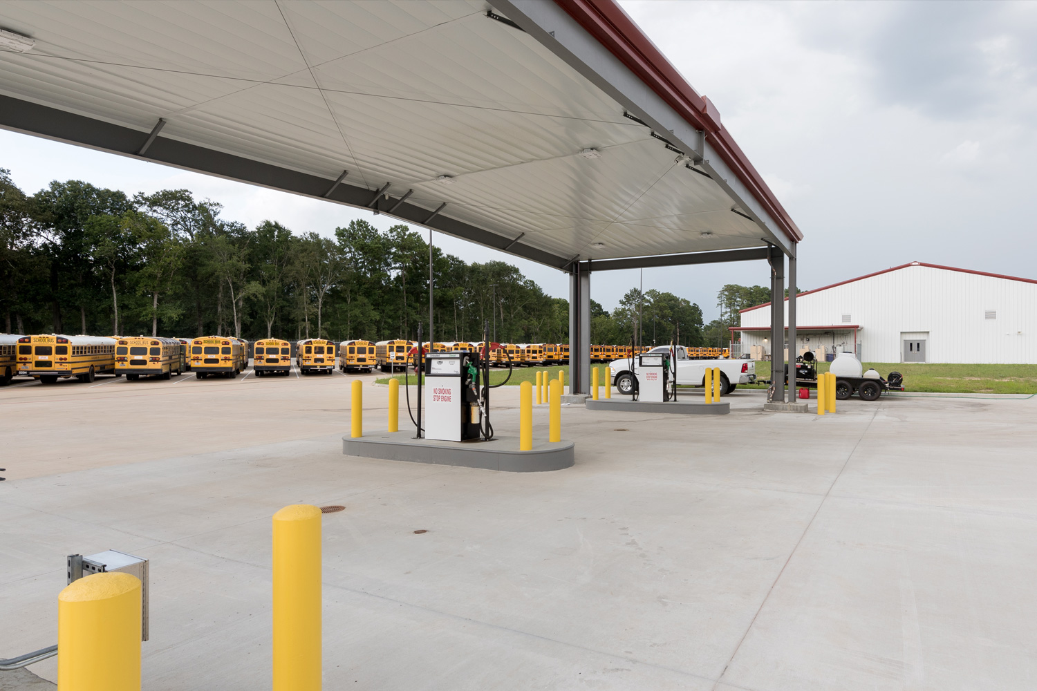 New 43,276 SF transportation facility includes offices, training room, conference room, print center, lunch room, lockers, eight maintenance bays, wash bay, fuel station, parts storage, and dedicated bus parking. Designed for efficiency and functionality, the facility provides modern maintenance and administrative spaces to support transportation operations.