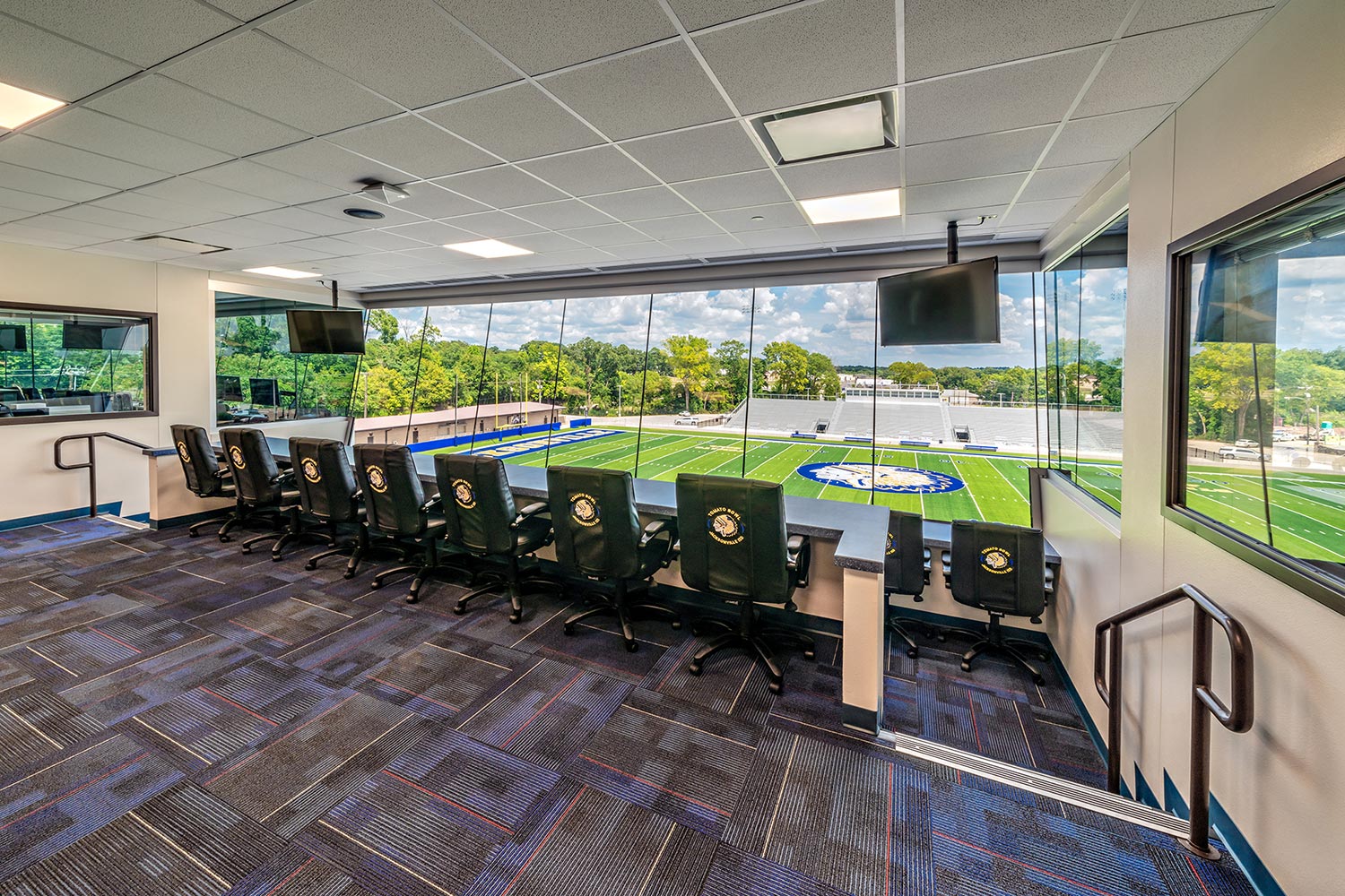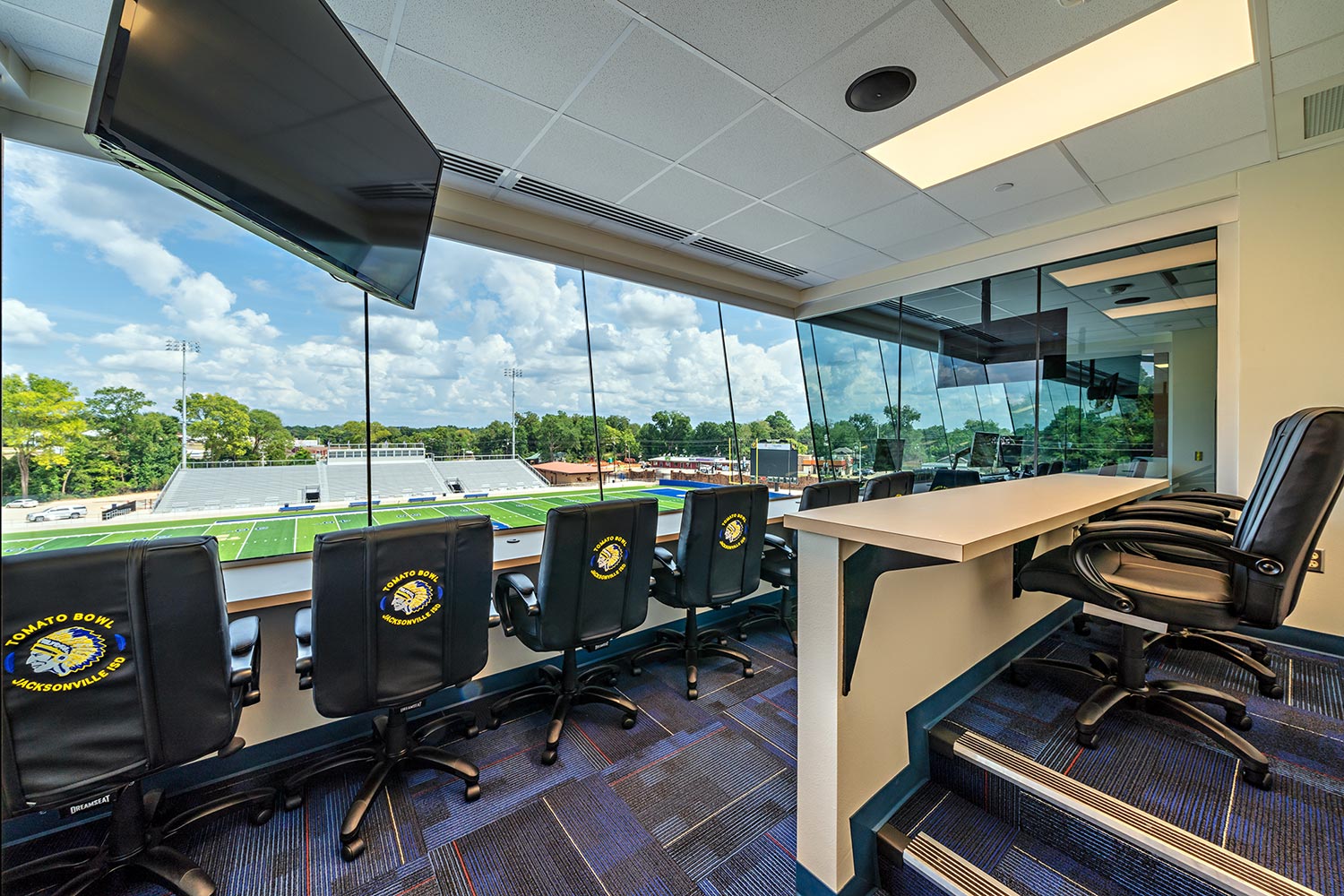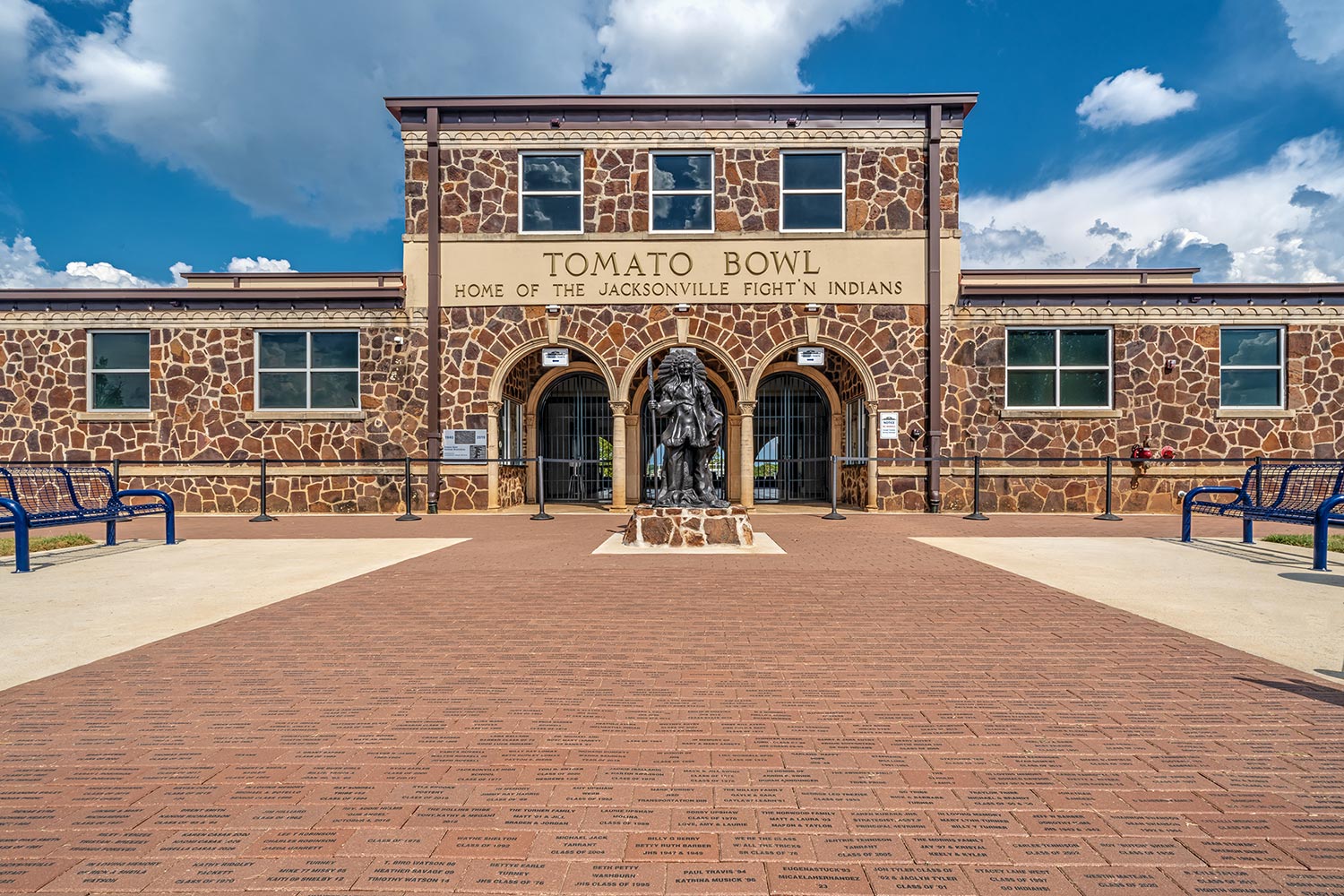 Full architectural and engineering services, from pre-planning and bond assistance through programming, design, construction administration, and warranty follow-up. This project preserves an 80-year-old Works Project stadium, blending historic renovation with modern upgrades. Shifting the field 40 yards added 2,000 seats, a secondary band entrance, and ADA/team drop-off parking. The updated 8,300-seat stadium includes renovated structures, a new press box, home and visitor locker rooms, concessions, restrooms, new aluminum bleachers, artificial turf with improved drainage, playing fields, security gates, signage, scoreboard, parking, and landscaping.